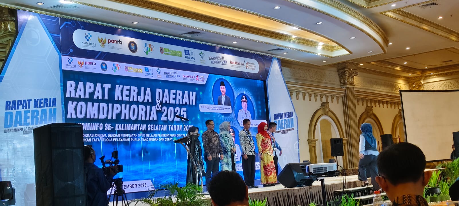 MEDIA CENTER BANJARBARU – Dinas Komunikasi dan Informatika (Diskominfo) Provinsi Kalimantan Selatan menggelar Rapat Kerja Daerah (Rakerda) dan Komdiphoria yang berlangsung selama 3 hari dari tanggal 25 hingga 27 September 2025, betempat di Ballroom Qin Hotel Banjarbaru.