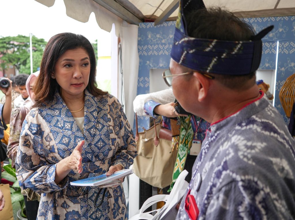 Pada kesempatan itu, stan KIM Tangguh Mentaos mendapat kunjungan langsung dari Dirjen KPM, Fifi, yang terlihat terkesan dengan tampilan full digital yang disuguhkan, dan ia juga menunjukkan ketertarikan pada batik sasirangan khas Banjar yang turut dipamerkan di stan Kalimantan Selatan. (Ald/MedCenBJB)